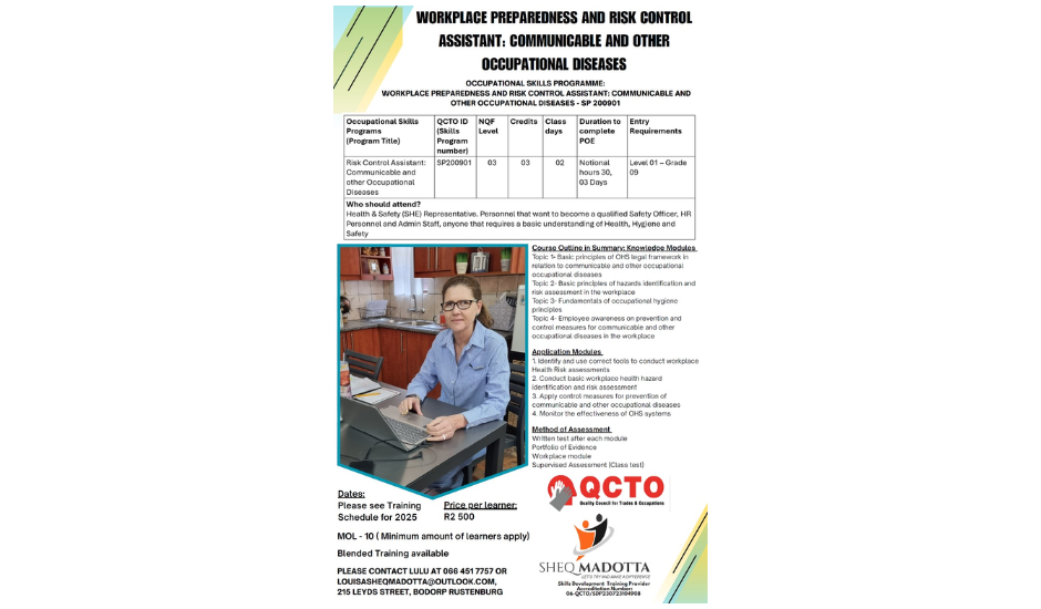 Workplace Preparedness and Risk Control Assistant: Communicable and other Occupational Diseases